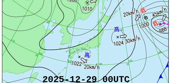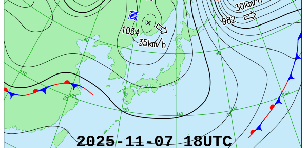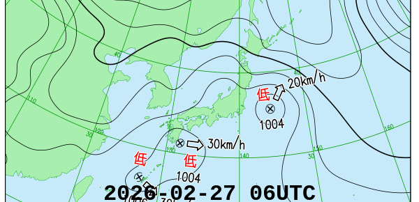 今日の天気図と似ている天気図の日を調べています。似ている度合の判断は気圧場の相関係数に依っています。気象庁が発表する天気図に合わせて毎日6時間毎に内容を更新しています。